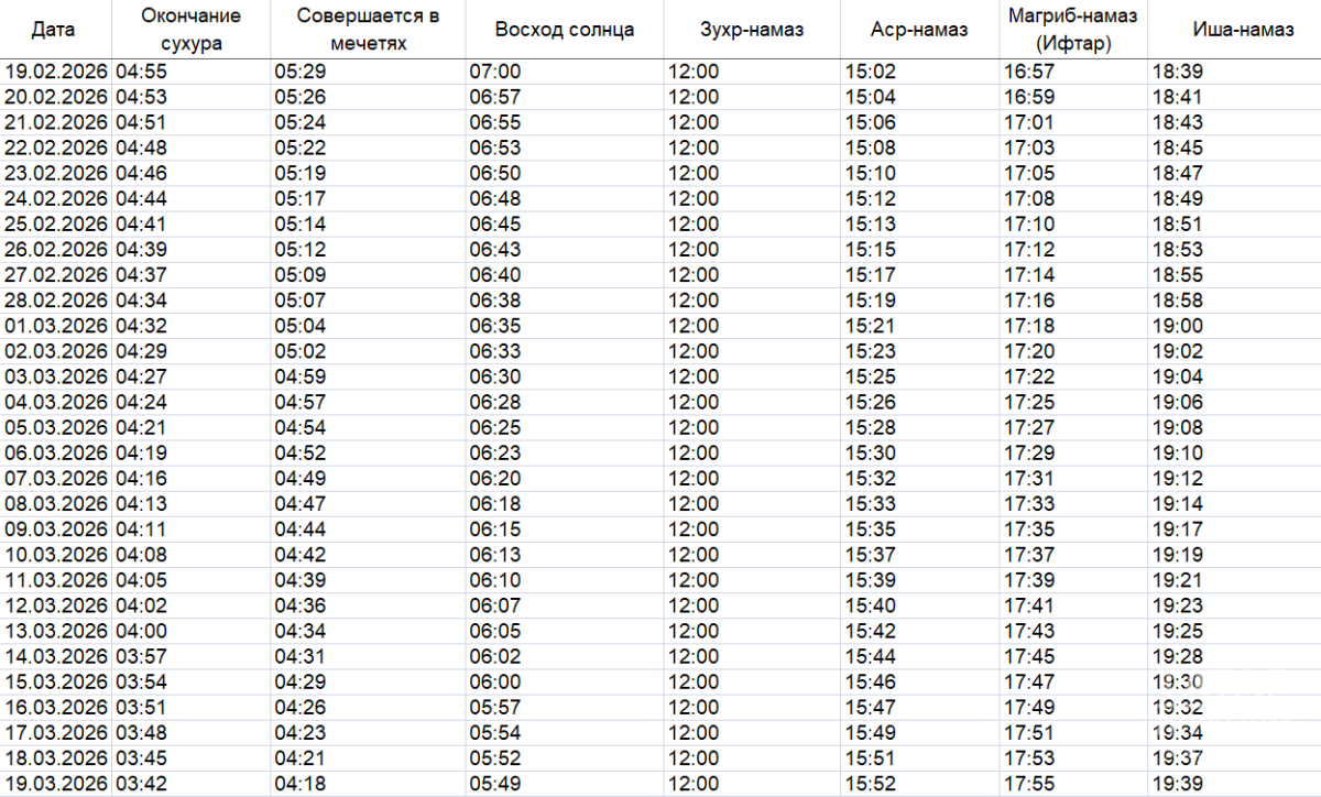 Время сухура и ифтара в Казани