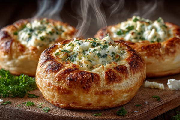 Чеснок здесь играет на двух уровнях: первый — горячий, поджаристый, впитавшийся в основу при выпечке. Второй — свежий, яркий, в прохладной творожной начинке. Они встречаются у вас во рту, создавая стереоэффект вкуса, где каждая нота оттеняет друг друга. Это не просто запах чеснока, это его многогранный портрет.