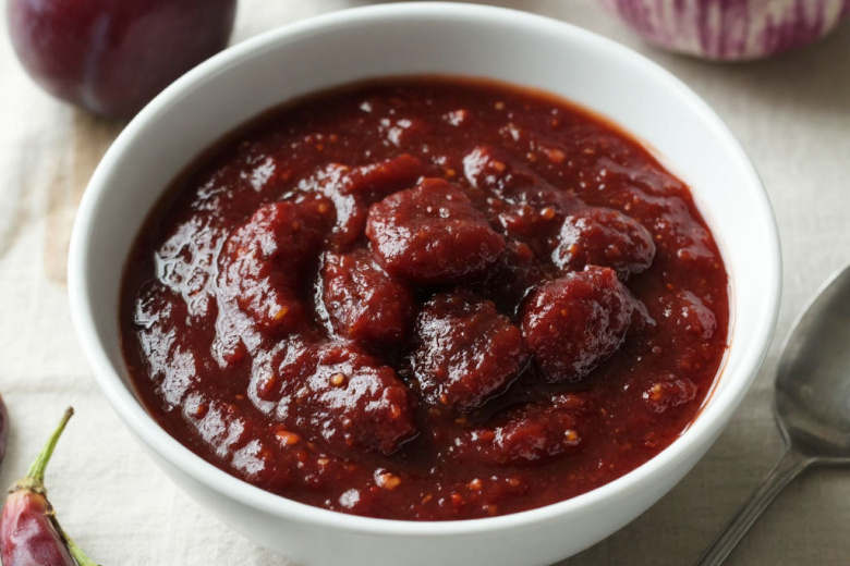 Для приготовления вам понадобится: 150 г чернослива, 2 зубчика чеснока, щепотка соли, щепотка хмели-сунели, по желанию — яблоко и грецкие орехи. Чернослив промойте, залейте стаканом кипятка и проварите 5 минут. Большую часть отвара слейте, оставив примерно четверть стакана. Измельчите чернослив с отваром в блендере, затем протрите через сито, чтобы удалить кожицу. Добавьте измельченный чеснок, соль, хмели-сунели, при необходимости разбавьте отваром до нужной густоты. В конце можно добавить тертое яблоко или орехи и снова пробить блендером. Соус готов, подавайте теплым или холодным.