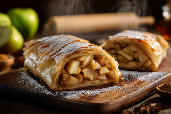 Яблочный пирог по-американски — выпекаем десерт, как за Атлантикой Есть блюда, которые кажутся сложными только на словах. Немецкий штрудель — из таких. На самом деле это тот самый яблочный пирог, с которым справится даже начинающая хозяйка, если знать один секрет австрийских кондитеров: яблоки перед начинкой слегка томят с ромом и тростниковым сахаром. Именно этот шаг даёт ту самую карамельную глубину вкуса, которой нет ни в одном стандартном рецепте.